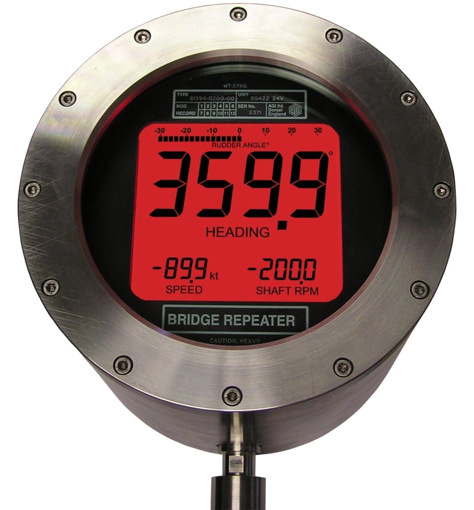 AGI’s range of repeaters for naval applications include Solid State Displays for Navigation and Meteorological data. Available in dedicated single function or multi function colour types.