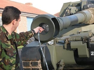 The BG20 has been specifically designed to modernise and improve the inspection routines of large calibre barrels. A two-point measuring head is supported in the barrel or chamber by a clear disk which facilitates the angular alignment of the head and the location of a suspected defect.