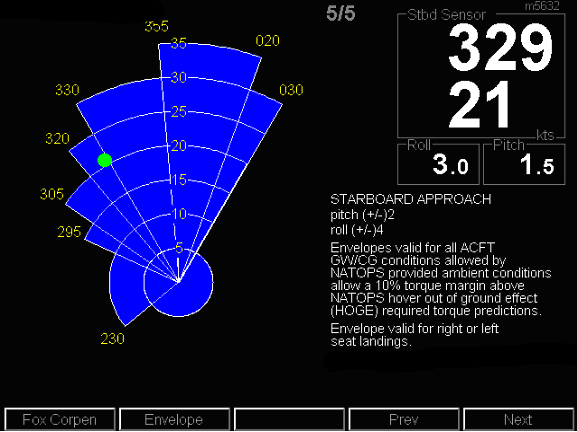 A Ships Helicopter Operational Limit (SHOL) diagram is a polar plot of acceptable relative wind speed and direction conditions determined safe to conduct helicopter flight operations from a ship’s deck. Other parameters such as sea state, pitch and roll are also considered in the decision to launch or recover a helicopter. Traditionally a printed-paper SHOL would be used and the commanding officer would have to manually plot wind information on the SHOL diagram, having collected data on ship’s motion and wind conditions from a variety of sources.
