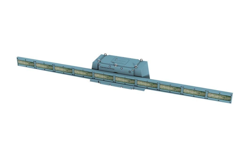 The STABILISED HORIZON REFERENCE SYSTEM (SHRS) is an illuminated bar that remains horizontal irrespective of the ships roll motion. This provides the pilot with a “True Horizon” reference whilst those lights fitted to the ships superstructure continue to show the ships actual angle of roll.